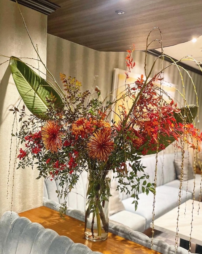 ご来店いただく度に変化する生花もお楽しみいただけます。